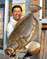 8月3日、松岡さんは二神沖での船釣りにて、89.2cm 7.5kgの大物ヒラメを見事仕留めた。 |
