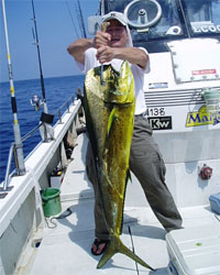 8月7日、ライトジギングで田中さんは136cmのシイラと 6.4kgのヒラマサを見事にゲット! |