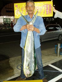 9月11日、山下さんは平戸・白浜にてシイラ128cm 11.5kgを釣り上げた。 |