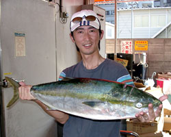 9月27日、北九州市の土井さんは、ジギングで 8.2kgのヒラマサを見事仕留めた。 |