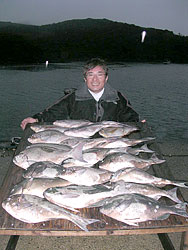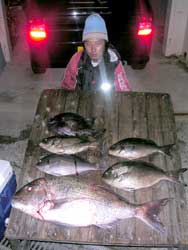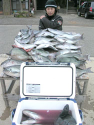 11月22日、中五島にて福岡の井上さん、45.5cm 1.4kgのクロを頭にクーラー2個を満杯にする好釣果を上げた。