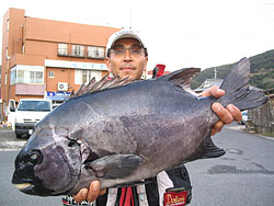 11月4日、東京都から遠征の笛木さんはショアジギングにて、76cm 4.6kgのマダイをゲット!この他にもアカハタなどを釣り上げた。