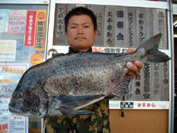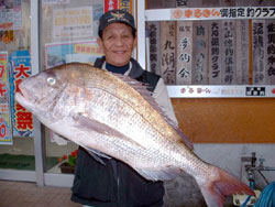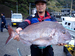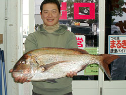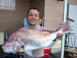 11月17日、吉原さん、船釣りにて、マダイ 83.0cm 6.3kgを見事仕留めた。 |