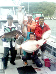 5月5日、お客さんは、平戸沖でのイカ流しで6kgのヒラメを頭にタイ、ヒラメを7匹釣り上げた。 |