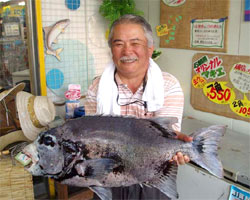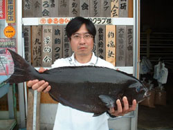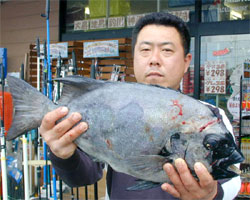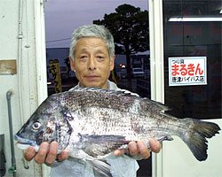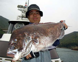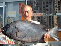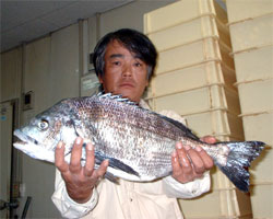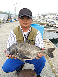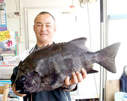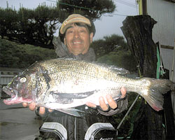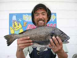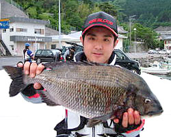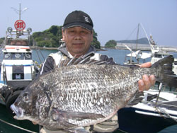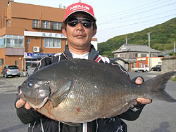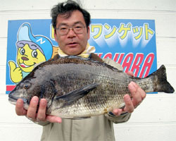 5月5日、石井さん(東京)は、濃部浅芽湾にて57.5cm2.3kgの巨チヌを釣り上げました。 |
