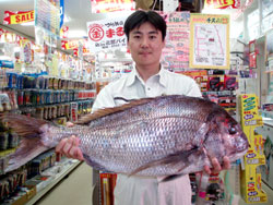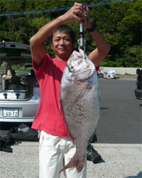5月20日、村中さんは6.75kgのマダイをゲットし、クーラーの中に入りきれずマダイが煮えちゃいました。 |