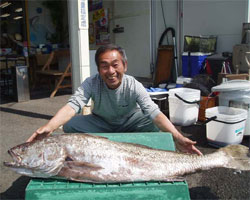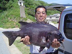 5月21日、大阪府高石市の中村さんは、57cm3.3kgの見事な大型オナガクロを頭に、他に2kg級を3匹含みクーラー満杯でした。大阪から4名でわざわざ車で10時間かけての釣行、しかし4名とも満足でしたと喜んで帰りました。