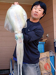 5月22日、只今好釣のボートエギング!この日も宗像市の小沢さんは、神湊の健栄丸を使用し、本人もビックリの3kgオーバーの大型アオリイカを含む計4匹の好釣果!フラッシュダンサーでの第1投目でいきなりこのBIGアオリがHITしてきたそうです!
