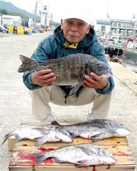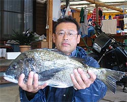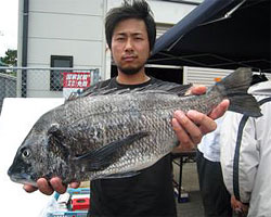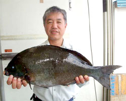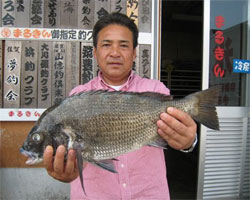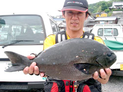 6月2日、田中さんは52.5cm 2.3kgの大物チヌを見事に釣り上げた。 |