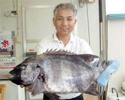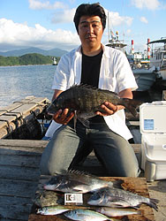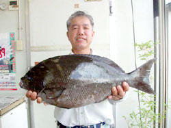 6月22日、押川さんは、船間にて朝1番、午前5時半にガンガゼ餌にて63cm5kgのイシダイをお見事ゲット!
