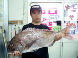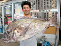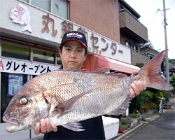 6月20日、岡田さんは、底物カニエサにて79.5cm5.75kgの大型マダイを見事手中にしました!