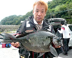 6月10日、森田さんは 伊座敷高瀬にて 非常に珍しい コクハンアラ 64.5cm 4kgを釣り上げた。 |