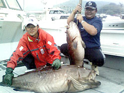 6月30日、お客さんはアラ釣りに出港し、朝一で2匹ヒットしたが糸切れしてとれず昼すぎにまた2匹ヒットし、見事33kgと16kgを釣り上げた。