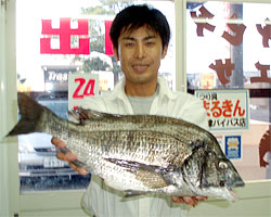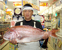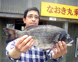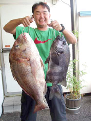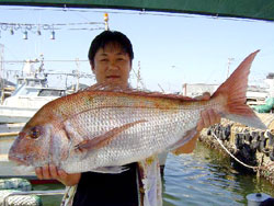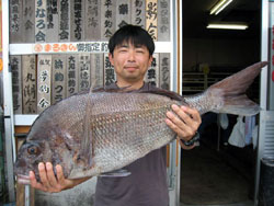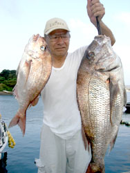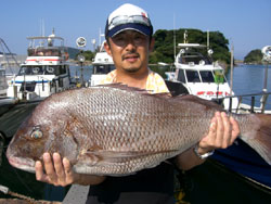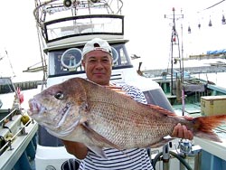 8月17日、松本さん92.5cm 8.8kgの大型マダイを釣り上げました。 |