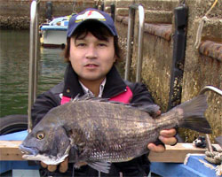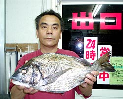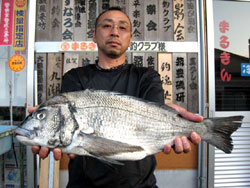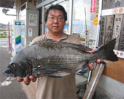8月26日、斉野さんは、落とし込みで53.5cm2.2kgの大型チヌを見事手中にしました! |