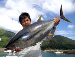8月22日、山口県からお越しの神田さんは対馬沖のジギングにて8kgの良型キハダマグロを見事に釣り上げました! |