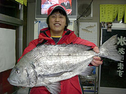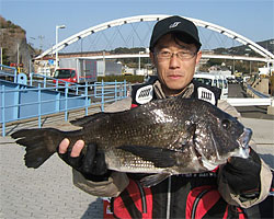 3月8日、松林さんは、チヌ54.5cm 2.4kgを見事に釣り上げた。 |