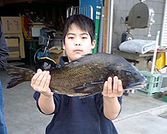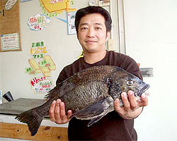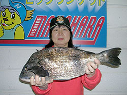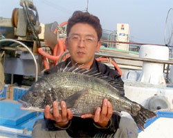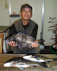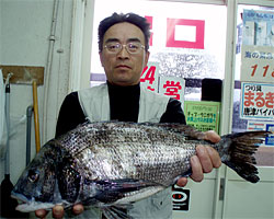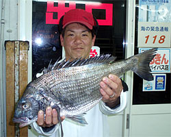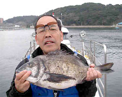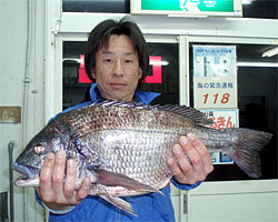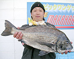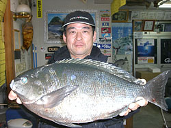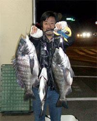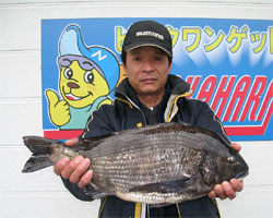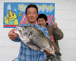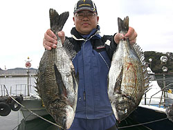 3月1日、江頭さんと内田さんは日帰りで、江頭さんはチヌ56cm2.4kgを見事にGET! |