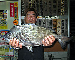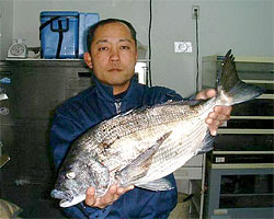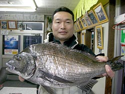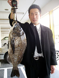 3月15日、森さんは、鹿児島錦江湾にて午前8時半、チヌ52cm2.1kgをお見事ゲット!3日前には50cmクラス3匹ゲットとの事。 |