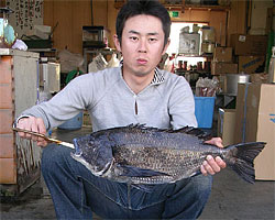 3月9日、大分の田畑さんお見事!尾長めじな60cmオ-バ-をしっかりゲット! |