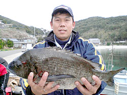 3月6日、重松さんは、加唐島の水タレにてチヌ54cm3kgを見事ゲットしました!加唐島では現在フカセで良型のマダイも上がっているそうです。 |