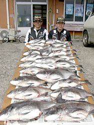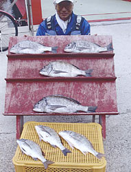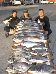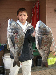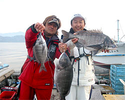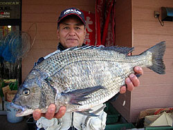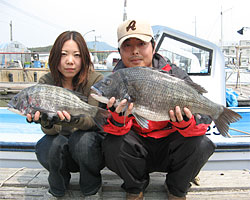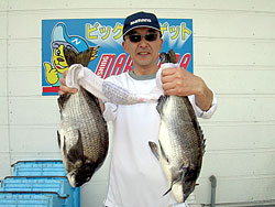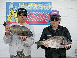 4月11日、口木さん、立部さんは、最大2.5kgのチヌを頭に見事な釣果! |