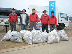 4月6日、ハヤブサ玉井さん&まるきんスタッフでエギング王者決定戦予選第1戦の待機時間に清掃活動を行いゴミ 燃える物 68.5kg 缶類12.0kgをGET!ゴミはもって帰りましょう!