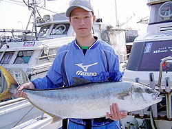 4月4日、井上くんはヒラマサ12.8kgを頭に8kgから2kgまで8匹ゲット! |