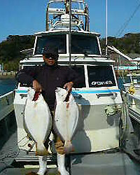 4月8日、お客さんは、イカ流しでヒラメ6kg〜2kgを4匹、タイ1匹釣り上げた。 |