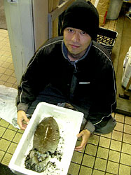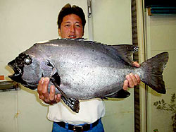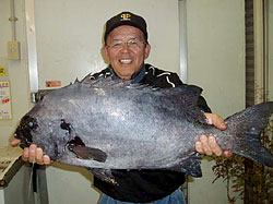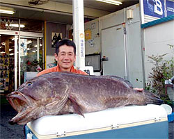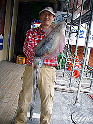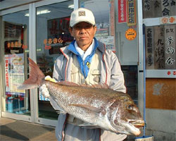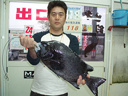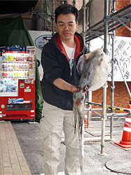 4月20日、常連のエギンガー岡本さんは2kgジャストの巨大モンゴウをゲット!!これはデカイ!! |
