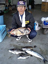 4月2日、富松さんは、フカセ釣りで大型チヌ58cm〜40cmを7匹、メイタ多数ゲット。チヌの50〜58cmが数多く釣れています。 |