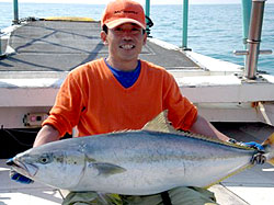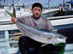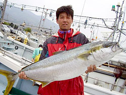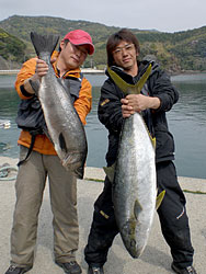 4月27日、ジギングで池田さんグループはヒラスをゲット古野信さんはヒラマサ15.8kgをゲット |