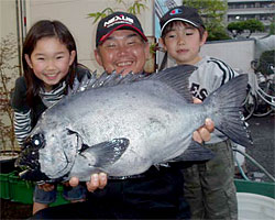 4月12日、福田さん、重松さんは、チヌ、スズキ、ヒラマサなど好釣果を上げ、同日、岩下さんはチヌを釣り上げました。 |