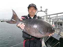 4月2日、岩井さんは、53cm2.6kgの大型チヌを見事にゲット! |