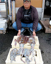 4月20日、脇山さんはエギングで3.05kgを筆頭に大物ミズイカをGET!