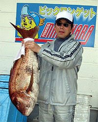 4月27日、田中さん御厨にてマダイ82.0cm 6.0kgを釣り上げた。