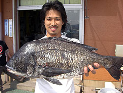 4月8日、谷丸さんは、フカセ釣りで55cm2.9kgの見事なチヌをGET!! |