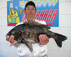 4月19日、浅芽湾にて後藤さんは58cm2.8kgの巨チヌを釣り上げました! |