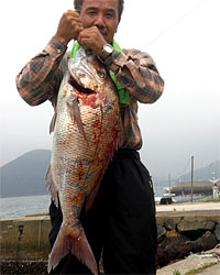 福岡県の井々村さんは、マダイ77cmを見事にGET! |