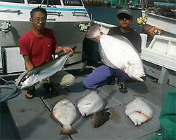 7月6日、お客さんはアラ釣りで、ヒラマサとヒラメ8kg〜5kgを釣り上げた。 |