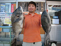 7月27日、小松さんは、フカセ釣りでチヌ52cm2kg、クロ39.5cm850gを釣り上げました。 |