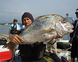 7月26日、山下さんは、野北にてチヌ50cm2.4kgをゲット。 |