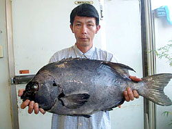 7月11日、金子さんは、カゴ釣りで大型チヌ56cm2.65kgを見事手中にしました! |