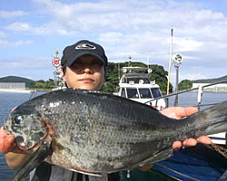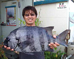 9月15日、中島さんと中井さんは、クロ最大42cm、コロダイを釣り上げました。 |
