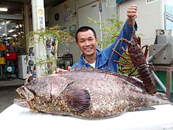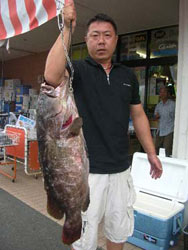 9月4日、川添さんは、南郷前島にて午前0時半に待望のアラをゲット!アラ104cm20kgとイセエビ1.5kgのオマケ付きの夜釣りとなりました。