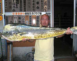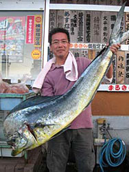 9月27日、有馬さんは、ルアー釣りでシイラ150cm15kgもの大物を見事に捕獲!おめでとうございます!! |