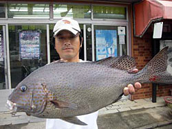 9月21日、土肥さんは桜島避難港12番にて、ガンガゼ餌で石鯛 54cm 3K140gをお見事ゲット |