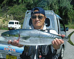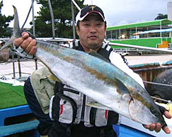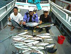 9月15日、お客さんは、イワシ落としでヒラマサ7kg〜3kgを5匹、カンバチ3kgを1匹、マグロ3kgを2匹、ヤズ30匹、あとカツオなど釣り上げた。ヒラゴも3匹釣り上げた。