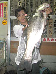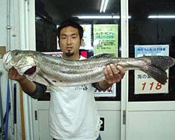 9月18日、末永さんは、ルアー釣りでマルスズキ73cm3.1kgを釣り上げました。 |