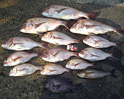 10月18日、福岡県からお越しの吉村さんは、良型イシダイやイシガキダイを好釣りしました。また、イシダイとイシガキダイのハーフ「キンダイ」がヒットしました。